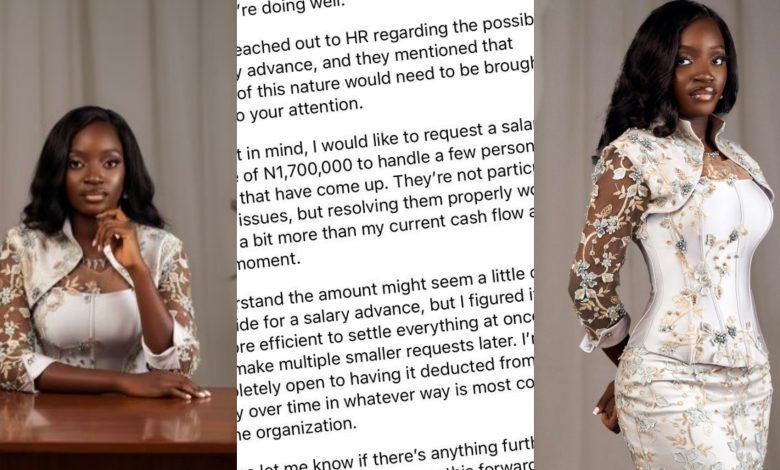 The female entrepreneur, @ChiomaAmandi on X (formerly Twitter), shared that the employee who requested a N1.7 million salary advance was hired just a month ago.