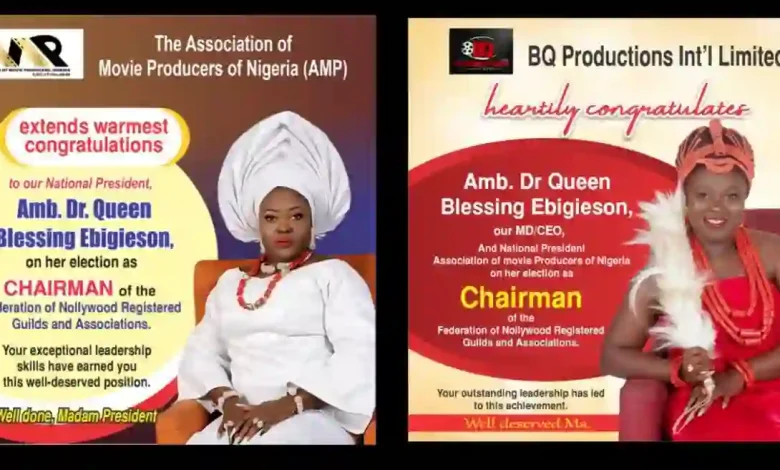 The Association of Movie Producers (AMP), BQ Productions, and several other stakeholders in the Nigerian film industry have congratulated Ambassador Queen Blessing Ebugieson following her election as the Chairman of the Federation of Nollywood Registered Guilds and Associations (FNRGA).