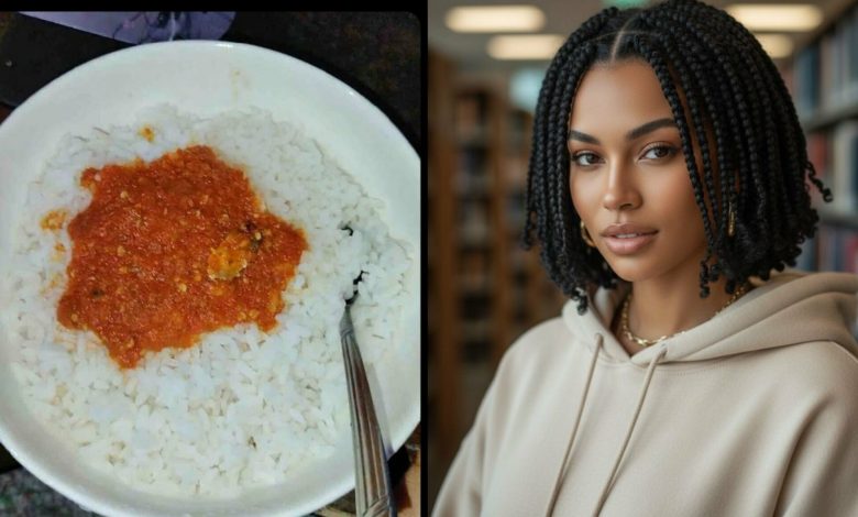 “He served me rice without meat” — Lady sparks online debate over visit meal