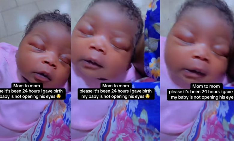 ”Mom to mom,it’s been 24 hours I gave birth. My baby is not opening his eyes”, The video’s caption reads.