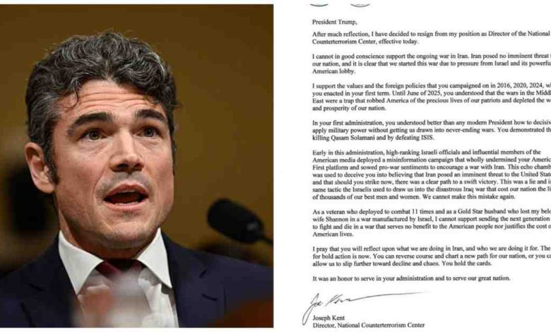 In a letter posted on Tuesday to his X account, National Counterterrorism Center Director Joe Kent stated that Iran posed “no imminent threat” to the US and that the Trump administration “started this war due to pressure from Israel and its powerful American lobby”.