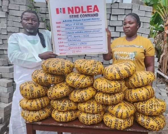 Operatives of the National Drug Law Enforcement Agency have arrested a pastor and his wife in Lagos after discovering 11 kilograms of skunk concealed in hidden compartments of their vehicle.