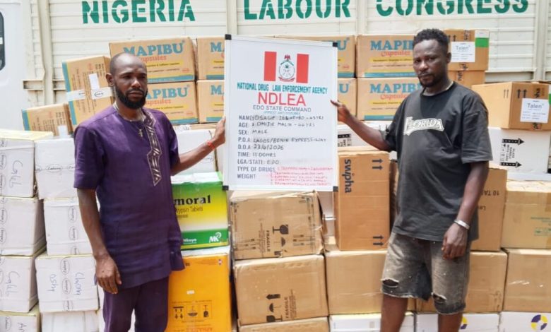 The Edo State Command of the National Drug Law Enforcement Agency on Monday said it intercepted controlled pharmaceutical drugs, including tramadol weighing 748.02kg, on the Benin-Lagos Expressway.