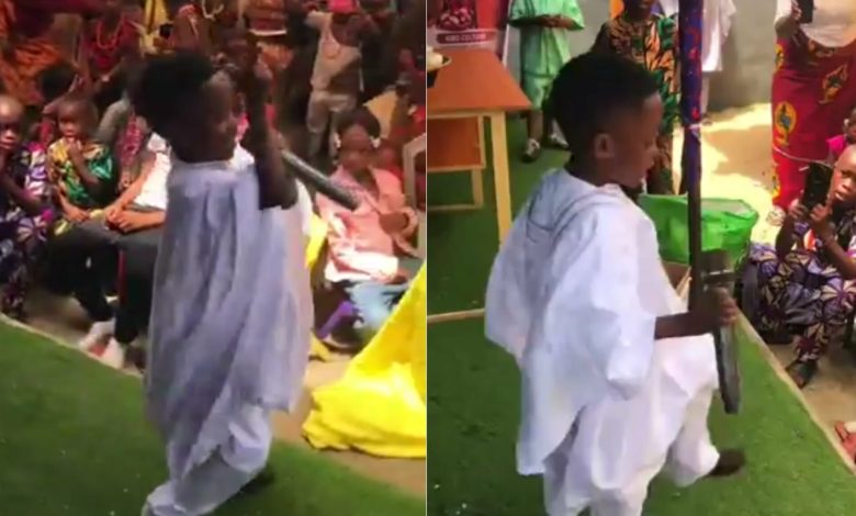 A primary school boy has captured widespread attention after performing his self-written song during a school programme, leaving many impressed by his confidence and creativity.