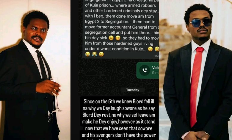 Notable Nigerian entrepreneur, Blord has reportedly been transferred to another section within Kuje prison, with details about his health raising concerns online.