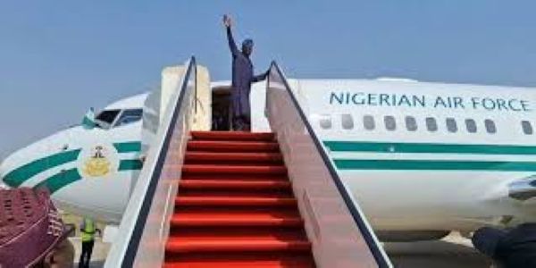 His aircraft touched down at the Presidential Wing of Murtala Muhammed International Airport at about 7:20pm.
