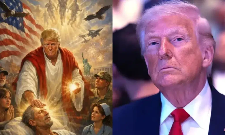 The image that circulated online showed Trump wearing flowing robes, surrounded by radiant light with his hands stretched outward in a pose that some viewers interpreted as a healing gesture commonly associated with depictions of Jesus Christ.