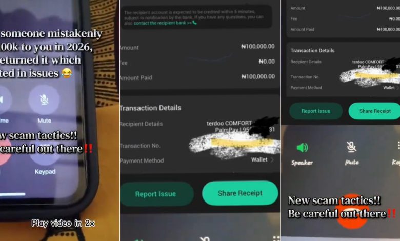 Read More »A Nigerian man has shared how he narrowly avoided falling victim to a suspected scam involving a ₦100,000 bank transfer.…